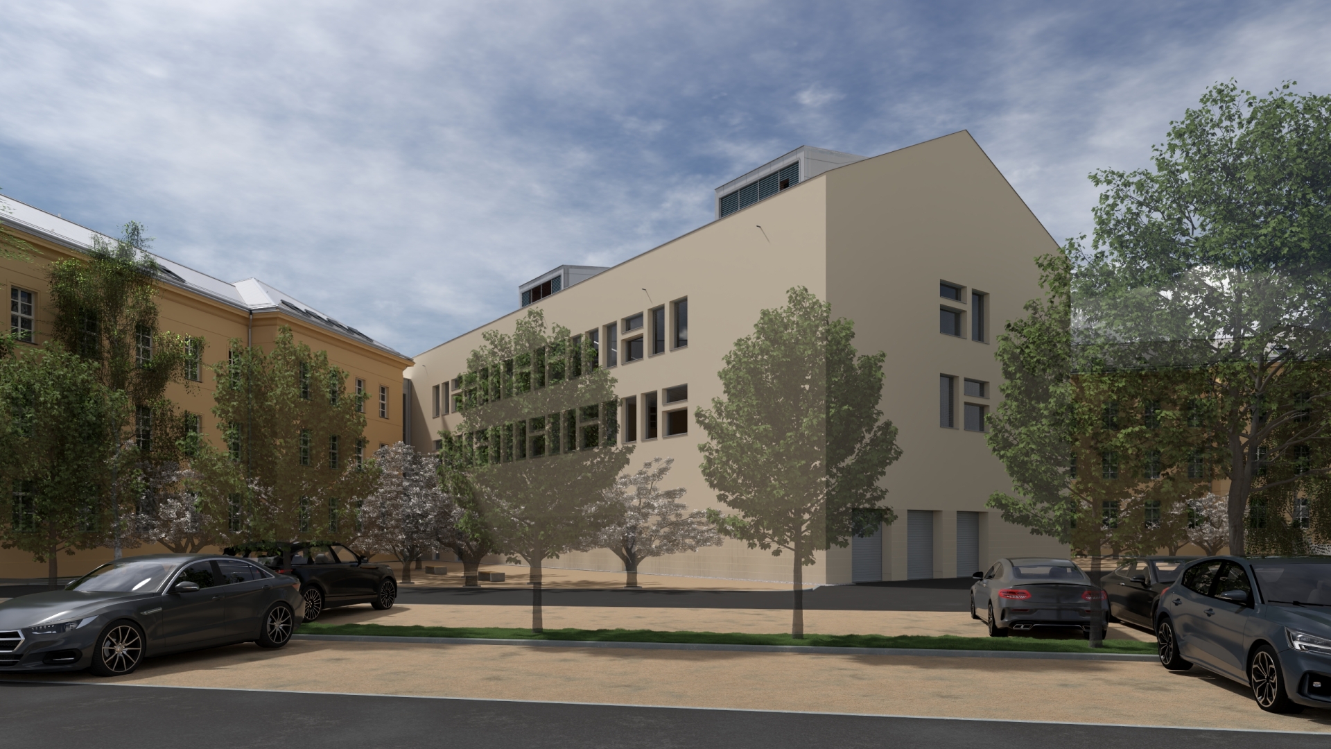 Žižkovy kasárny se nachází mezi ulicemi Žižkova tř., Novohradská a Kasárenská v Českých Budějovicích. Byly postaveny v letech 1890 - 1892. Byly tvořeny 4 hlavními kasárenskými budovami a drobnějšími dopovodnými objekty jako byla kuchyně, prádelna, lázeň, vězení apod. Předmětem našeho projektu je přestavba 2 stávajících objektů původně sloužících pro ubytování mužstva na kanceláře zamněstnanců Okresního soudu a dostavbou dalšího objektu sloužícího veřejnosti. Cílem návrhu bylo zachovat historicky hodnotnou fasádu stávajících objektů a k ní kontrastně umístit nový objekt v moderním soudobém pojetí.